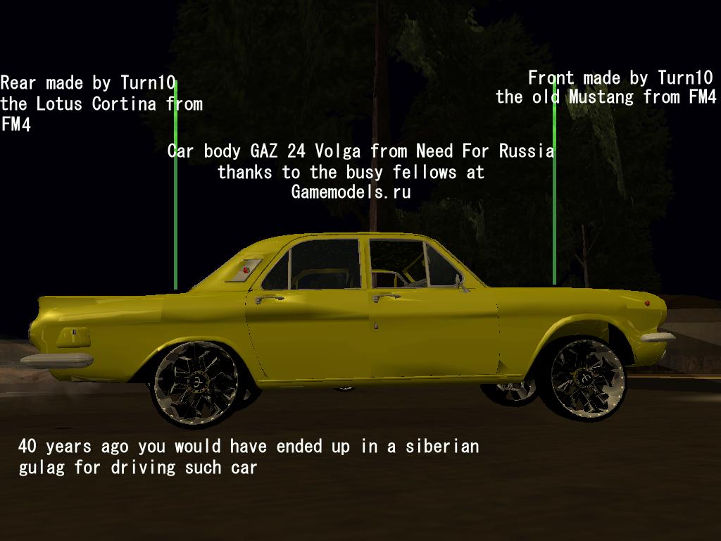 A russian GAZ 24 with front and rear ends taken from cars that were made for FM4 by Turn10