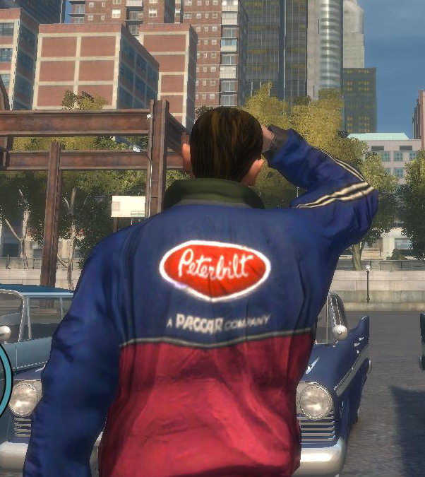 A Navy track suit with Peterbilt logo and red bottom for Niko Bellic.